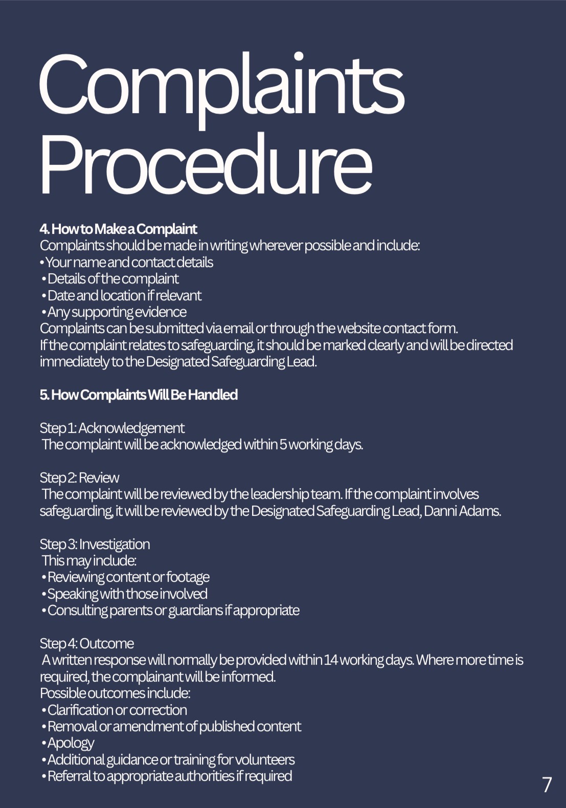 Our website has a report page where you can submit complaints for all different reasons. Your complaint will be dealt with by our Designated Safeguarding Lead, Danni Adams.